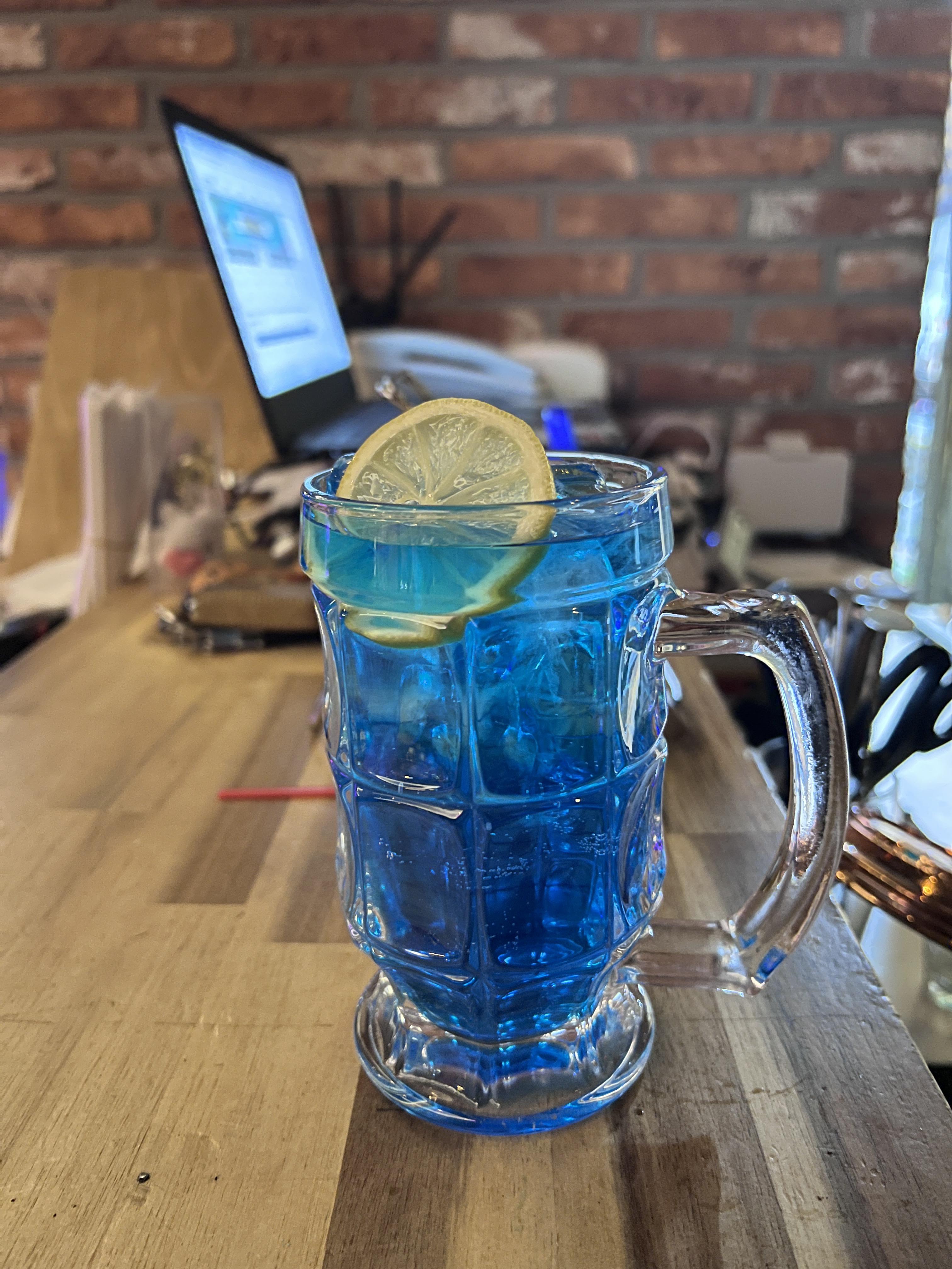 재료는 포모나의 블루큐라소라는 시럽입니다.
